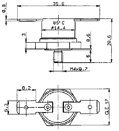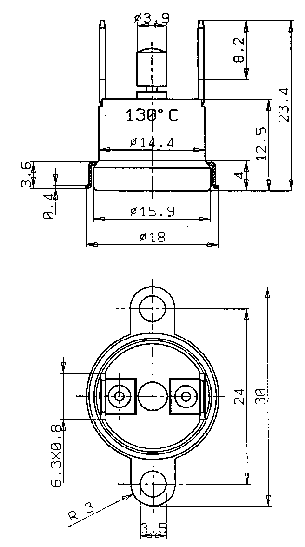 A seconda della temperatura di intervento e di altre specifiche, la temperatura massima al corpo del termostato può essere di 130, 175 o 200°C.