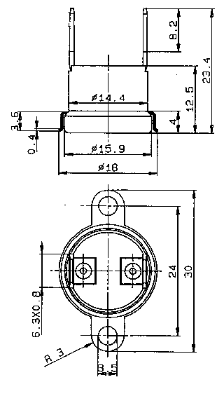 | fissaggio con vite M4, lunghezza 6mm, faston verticali | fissaggio con vite M4, lunghezza 6mm, faston orizzontali |